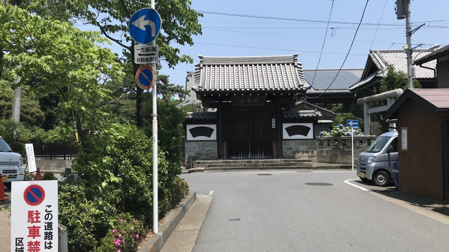 左折して直進すると突き当りに熊谷寺が見えます、一方通行になっていますので左折してすぐの左側が納品口になります。